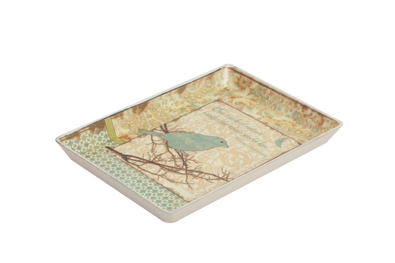 Декоративный поднос Vecchio — это изысканный и уникальный элемент декора интерьера, являющийся ярким представителем аксессуаров в стиле Прованс. Он изготовлен из керамики, имеет простую прямоугольную форму, это говорит о его деревенском очаровании и незамысловатости. Неброский рисунок в виде голубой птицы на нежном фоне мягких пастельных тонов придаёт подносу особый шарм и легкость.