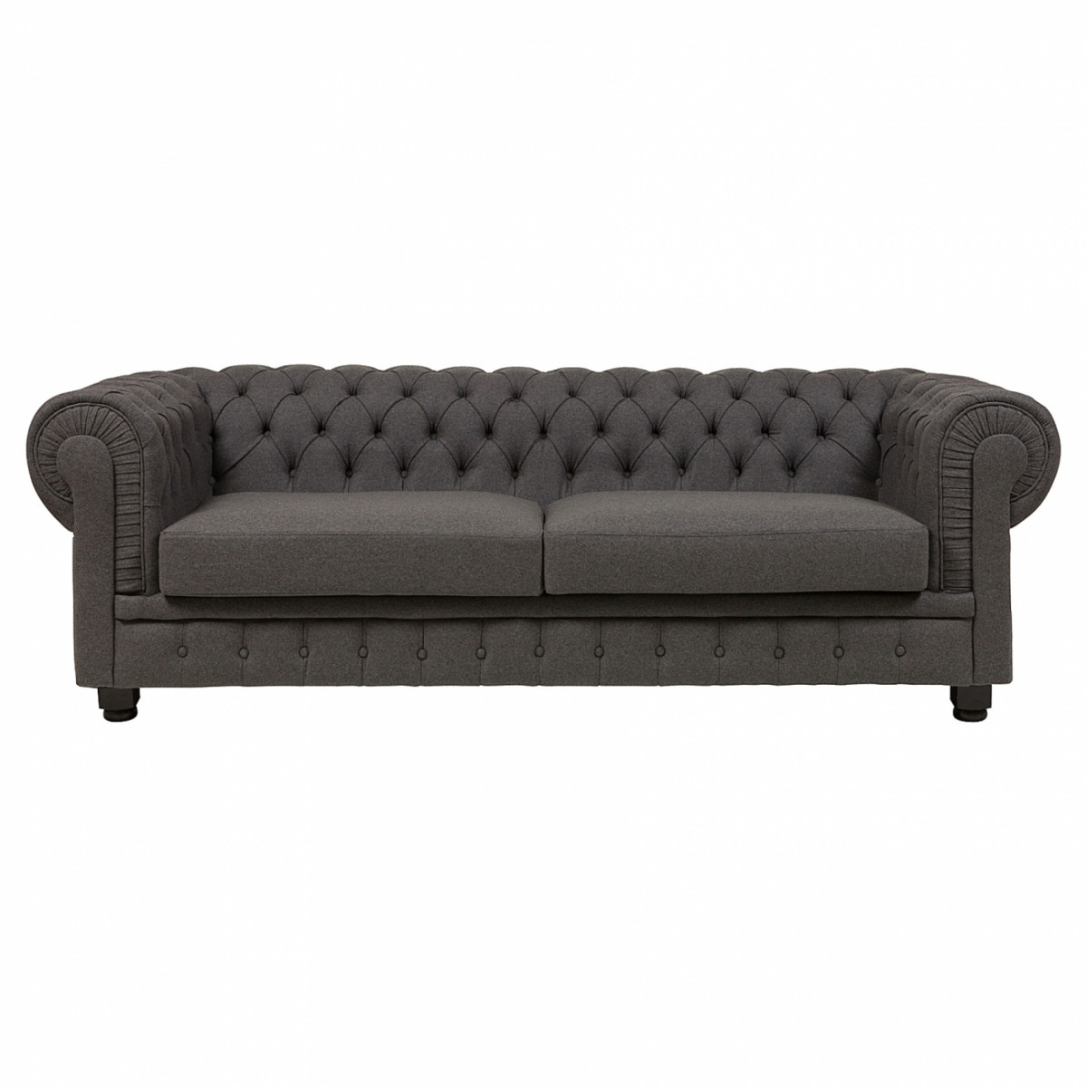 Представляем вашему вниманию: Диван Честерфилд Sir William прямой серый. Диван Chesterfield элегантная модель, приковывающая к себе особое внимание. В дизайне этой модели присутствует классика, благодаря округлым формам и сглаженным линиям. Строгий внешний вид дивана весьма обманчив, так как за ним скрывается элегантная мягкость и удобство модели. Мягкая спинка, широкие подлокотники и упругое сиденье обеспечивают комфортный отдых. Цвет ножек - Черный (Ral-9017). Доплата за другой цвет ножек +1000.